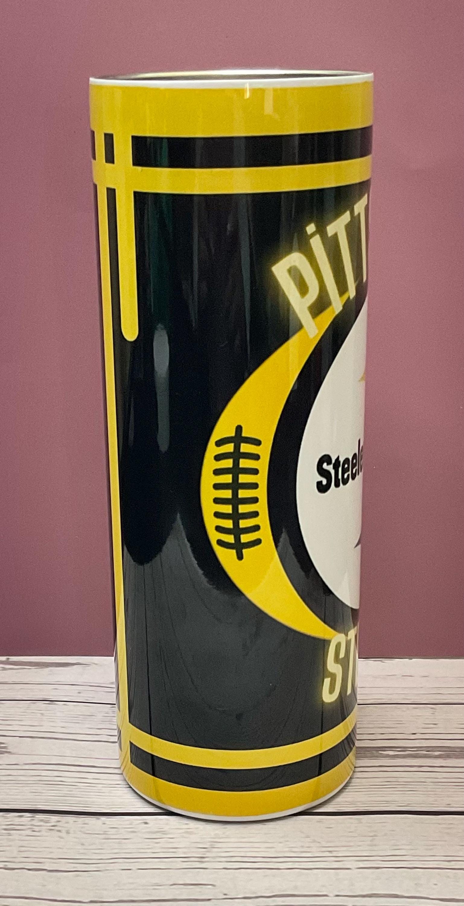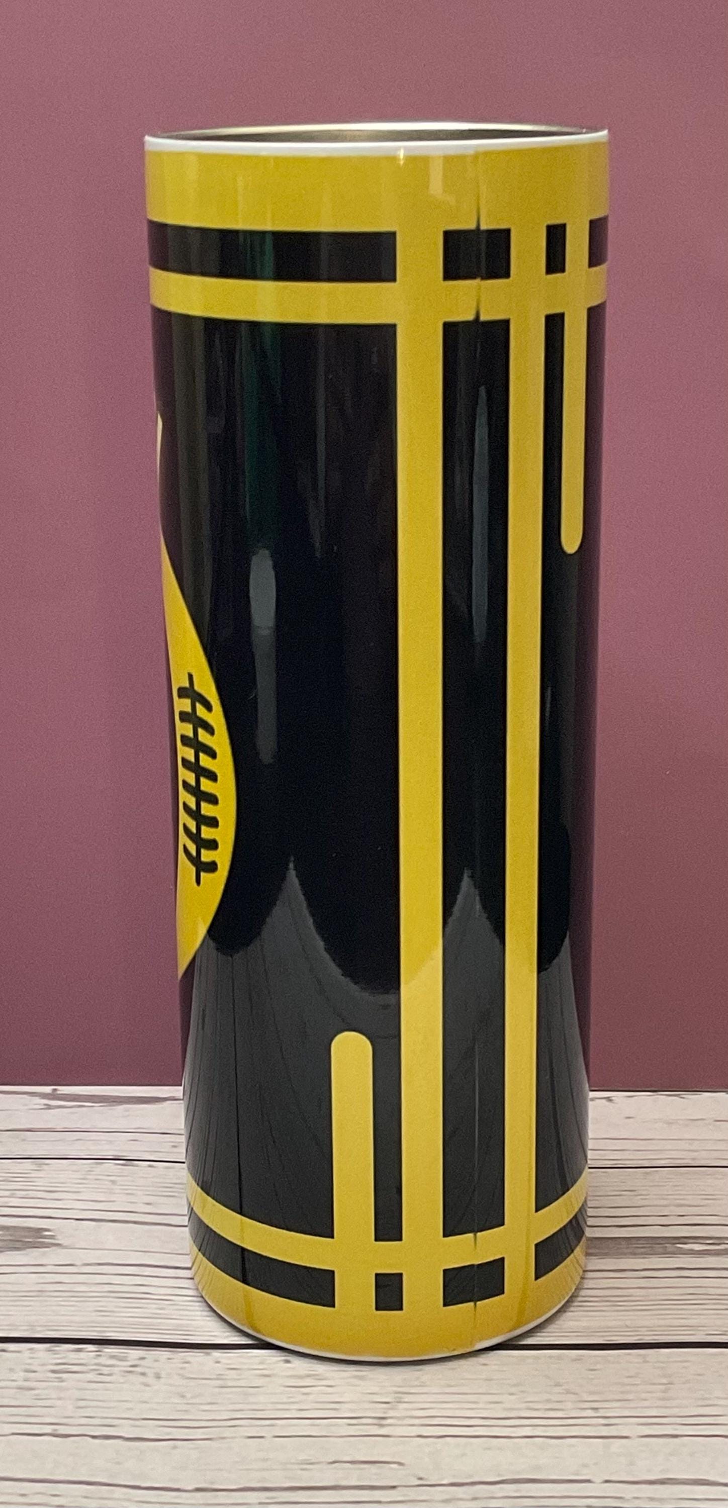 Sip your favorite drink in style with this football fan-inspired 20oz tumbler, designed in bold black and gold with a sports vibe that shows off your team spirit. Perfect for game day, tailgates, or everyday use, this insulated stainless steel tumbler keeps drinks hot or cold for hours.