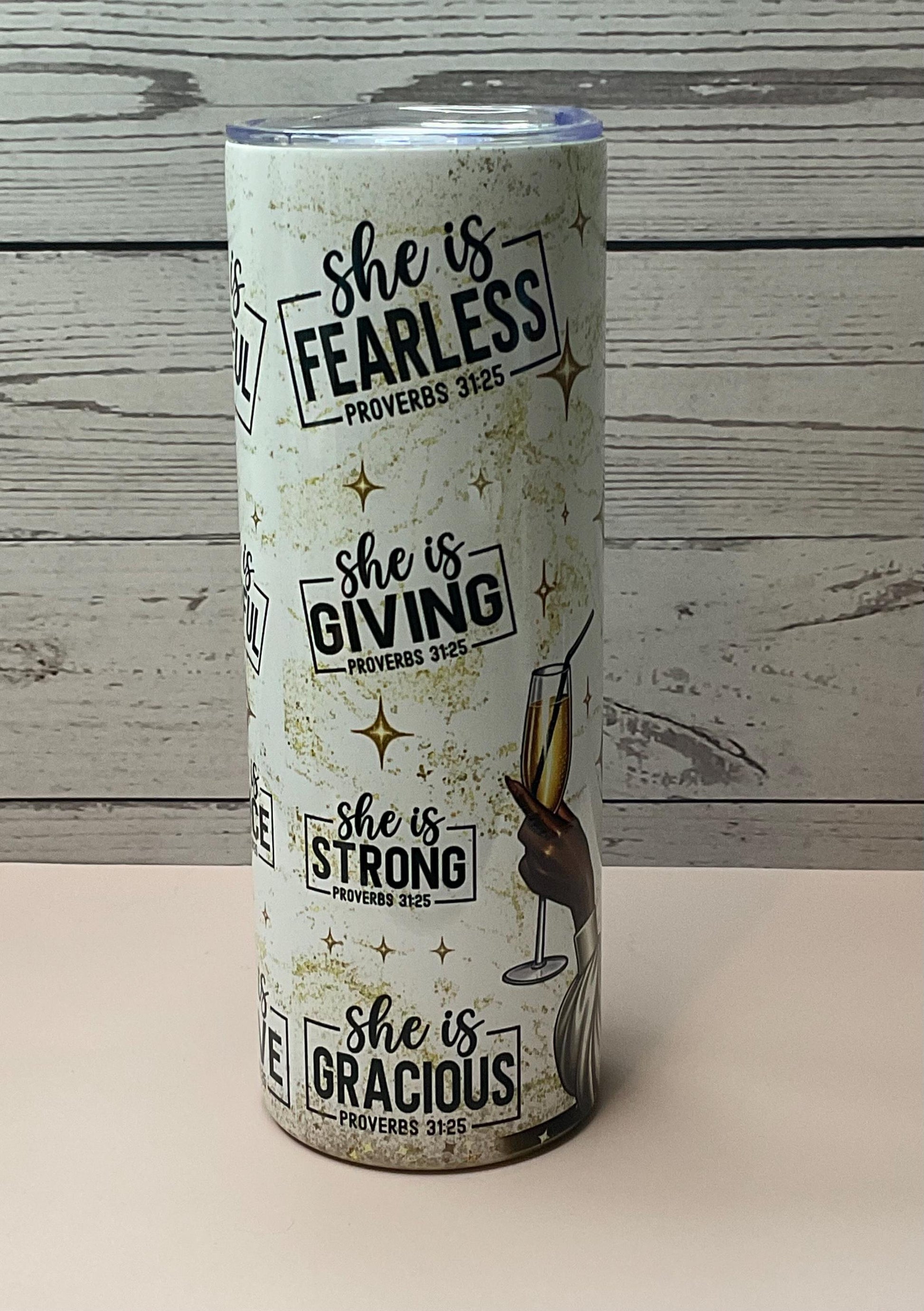 Celebrate and honor women of color with this striking 20 oz White Tumbler. Add it to your cart today and carry your drinks in style while spreading a message of empowerment!