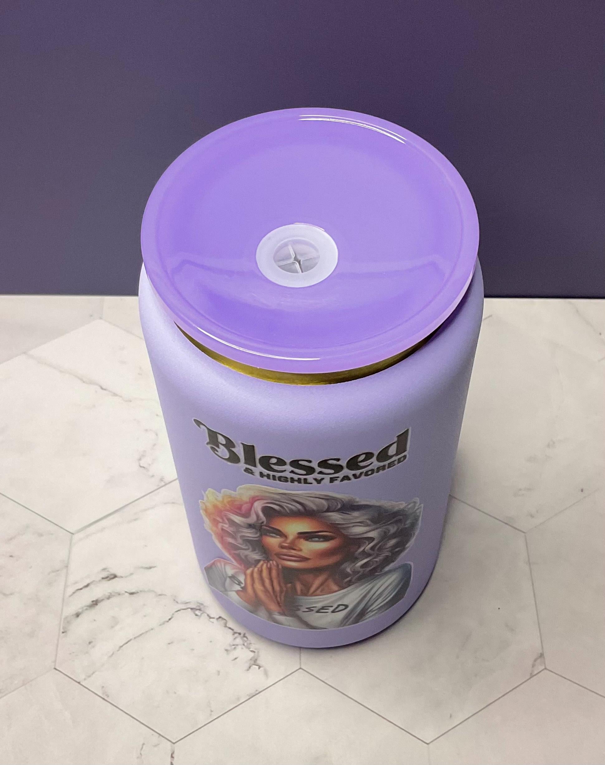Purple Blessed Stainless Steel Tumbler: 16 oz Insulated Iced Coffee Cup