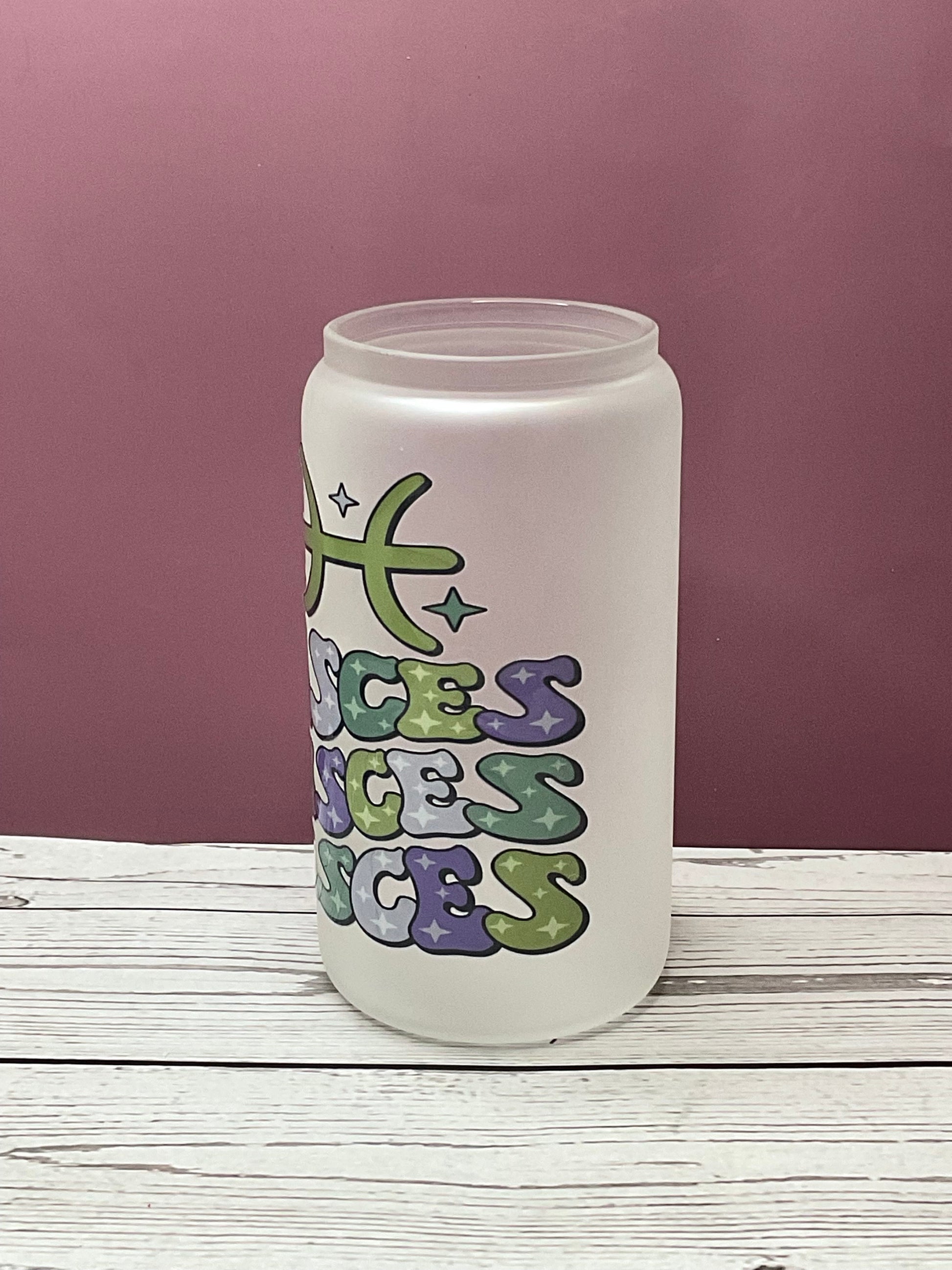 Pisces Frosted Glass Can – Zodiac Energy Cup | Mugnify Abundance