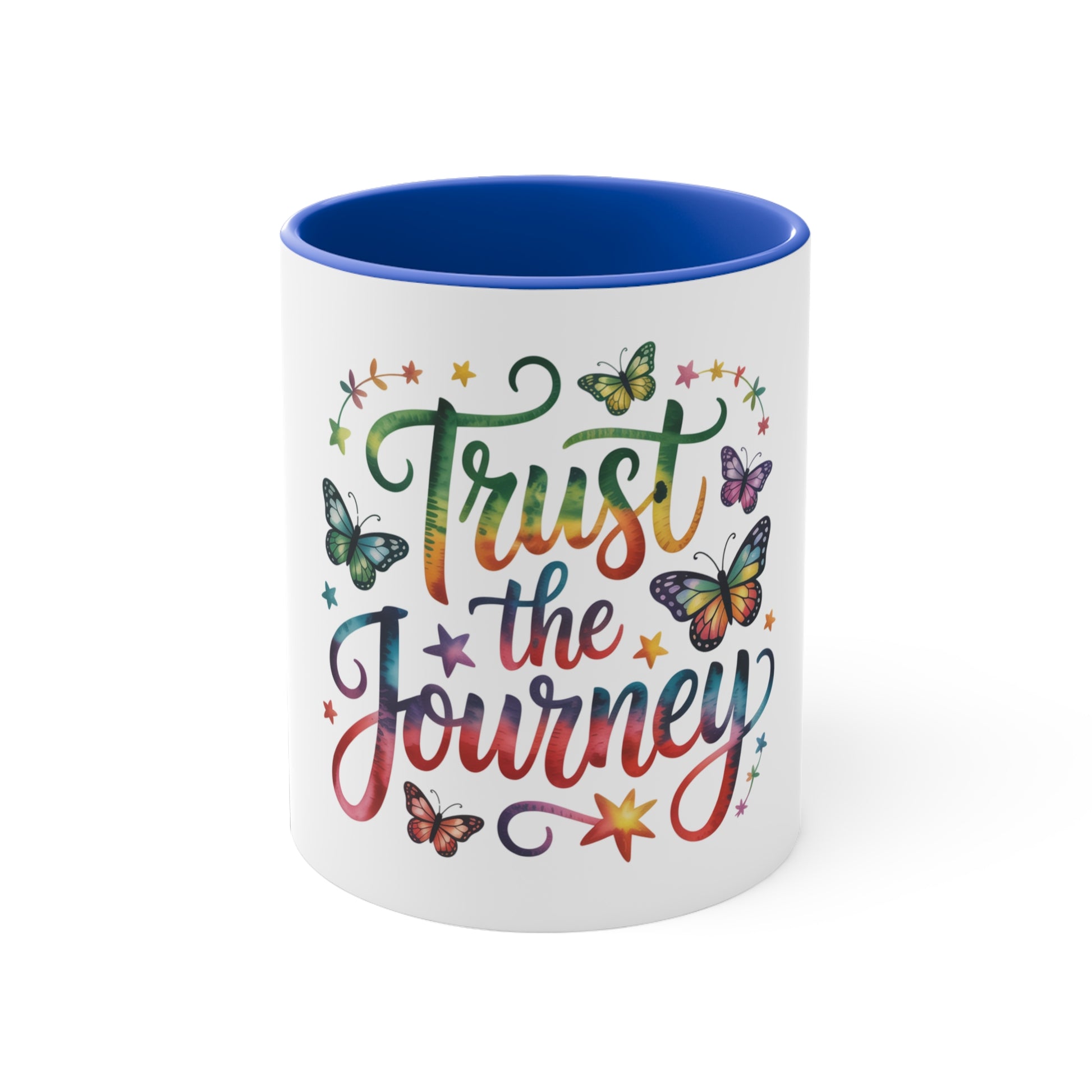Trust the Journey Accent Mug — Motivational Butterfly Coffee Cup (11oz)